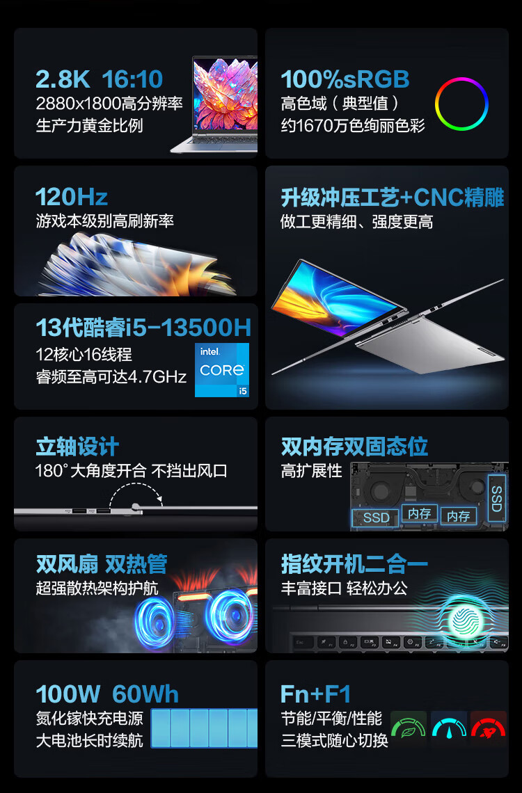 机械革命无界14Pro (i5-13500H 16G 1T 120Hz 2.8K 高色域)13代标压轻薄本办公商务本游戏本笔记本电脑