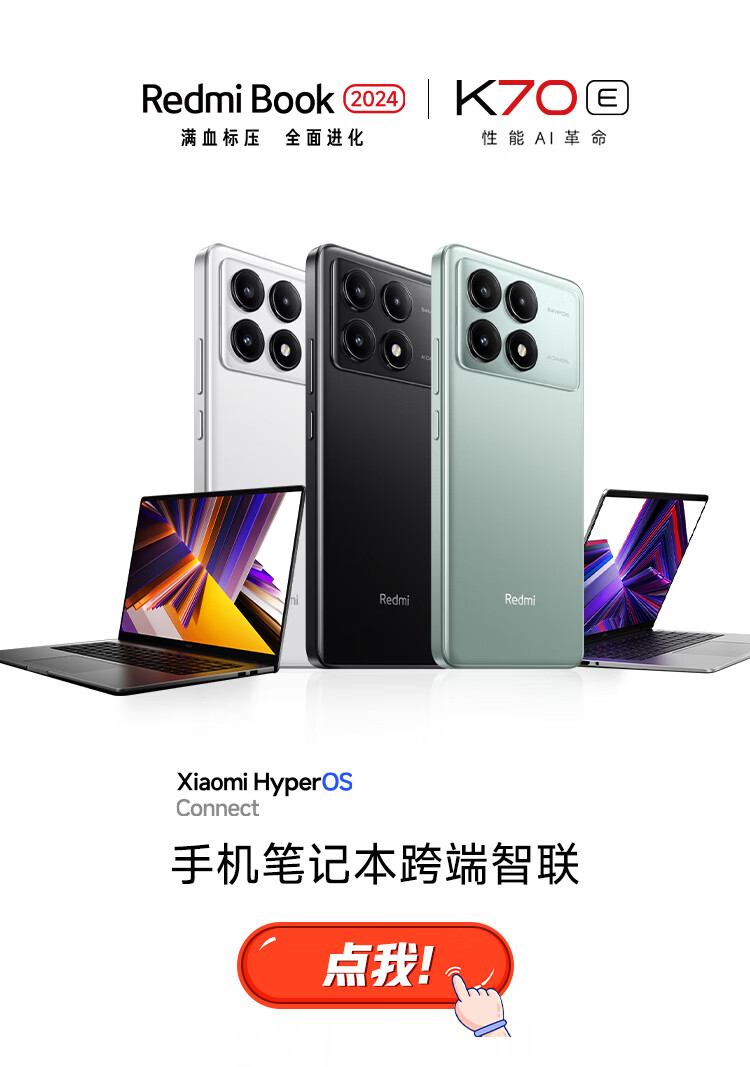 商品名称:小米(MI)Redmi K70E 天玑 8300-Ultra 小米澎湃OS 1.5K 旗舰直屏 8GB+256GB 墨羽 小米红米K70E