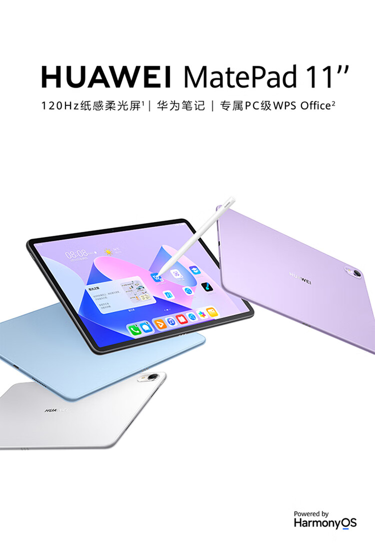 华为HUAWEI MatePad 11英寸2023款 柔光版120Hz高刷全面屏 HarmonyOS 娱乐学习平板电脑8+256GB WIFI晶钻白