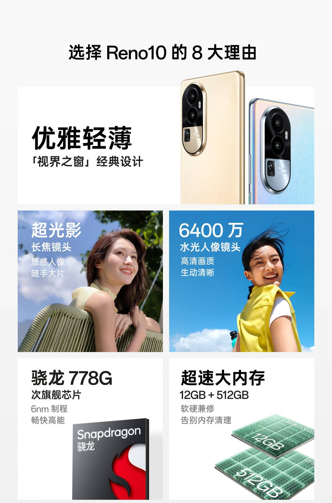 OPPO Reno10 8GB+256GB 溢彩蓝 6400 万水光人像 超光影长焦镜头 80W超级闪充 120Hz OLED 超清曲面屏 5G手机