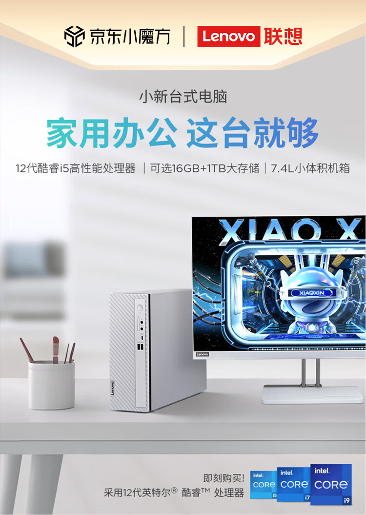 联想(Lenovo)小新个人商务电脑主机12代酷睿(i5-1235U 16G内存 1TB高速大容量固态硬盘 正版office)单主机