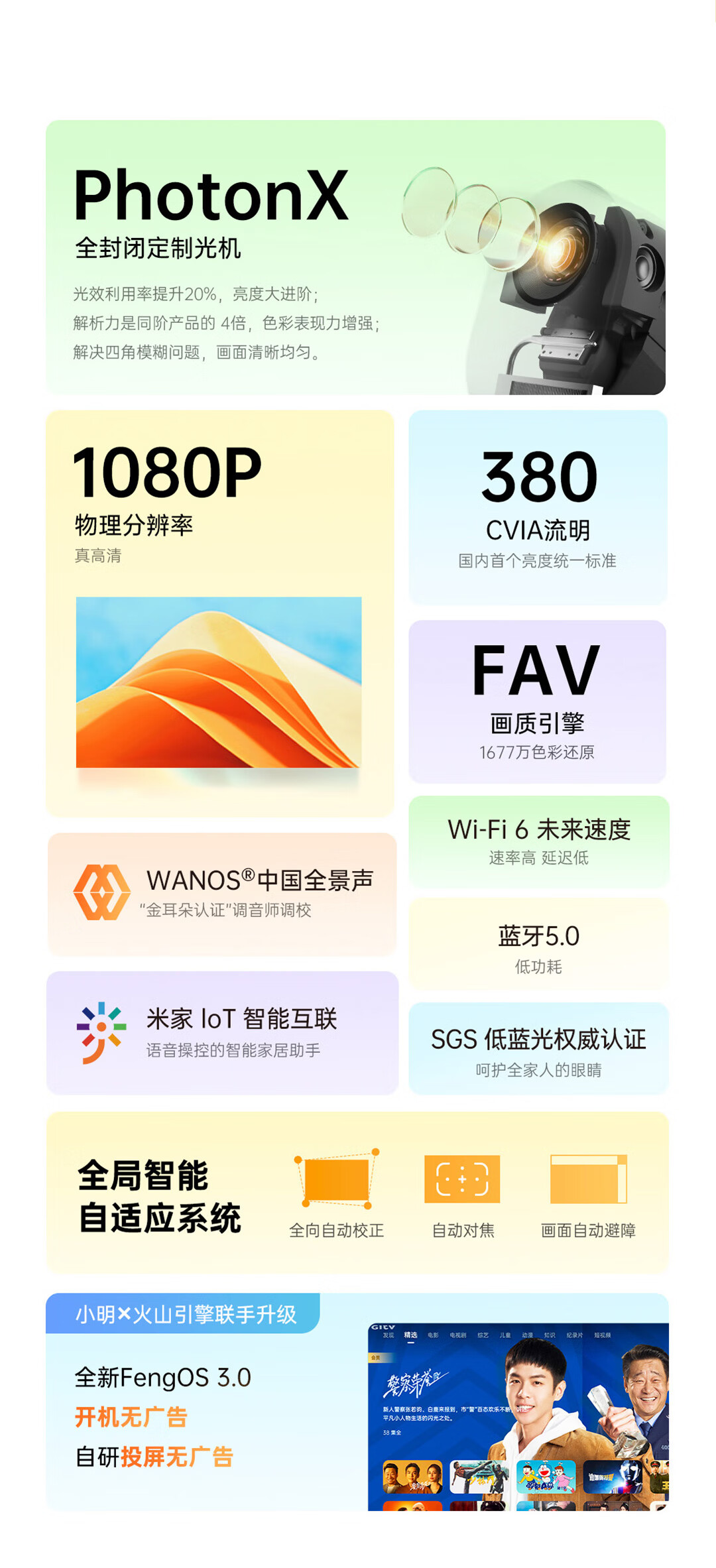 小明 Q3 投影仪家用 投影机 超高清家用卧室投影机 智能家庭影院(380 CVIA流明 全自动校正 1080P分辨率)